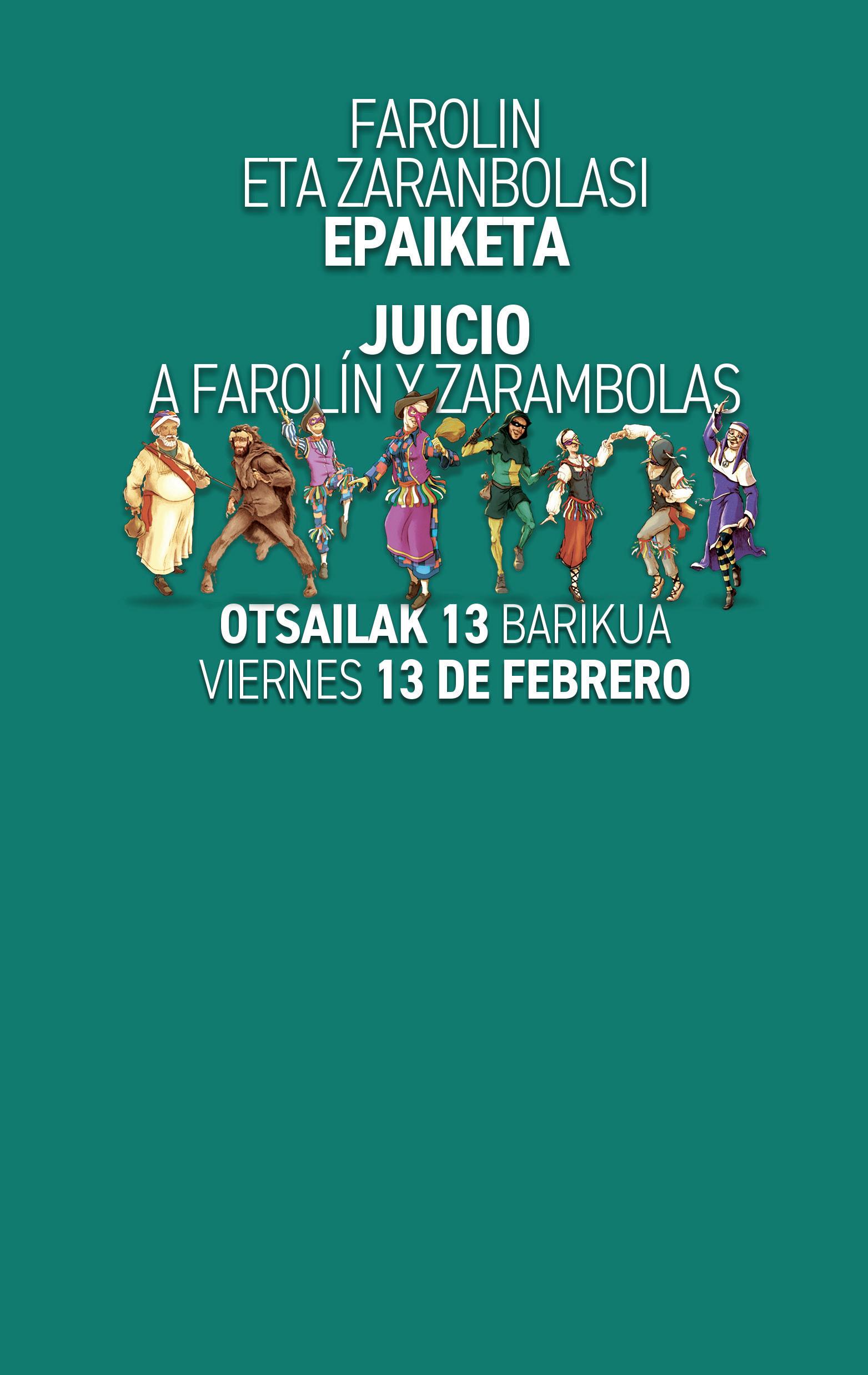 Hiriko kaleetan barrena ibiliko gara, gure mozorrorik onena jantzita. Bilboko aratusteetako pertsonaia nagusi biak izango ditugu lagun: Farolin eta Zarambolas, euren izaera xelebrearekin barre eragin eta gozaraziko digutenak.