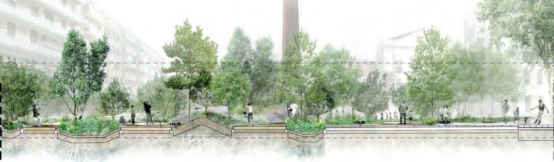 El proyecto opta por preservar la envolvente existente sin aumentar aislamientos ni adaptarla a la normativa, lo que permite reducir el consumo de energía gris. Al mismo tiempo, se conecta a una red urbana de frío y calor que aprovecha agua subterránea y energías renovables para alimentar la calefacción por radiación. Frente a las renovaciones convencionales y costosas, propone una vía intermedia que permite conservar el parque construido y dar respuesta a la urgencia habitacional.