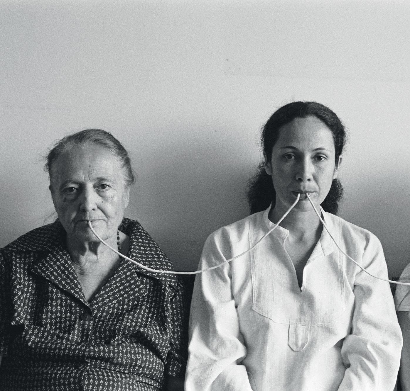 Un hilo conecta a la artista Anna Maria Maiolino con su madre y su hija, visibilizando la continuidad de los cuerpos y su vulnerabilidad. La pieza representa la interdependencia radical que nos constituye: del cordón umbilical que un día nos unió al aire que respiramos. Desde esta conciencia de un mundo común, tal como lo plantea Marina Garcés, la cuestión ya no es “¿qué nos une?”, sino “¿qué nos separa?”. Una inversión de la mirada que permite repensar la vivienda no como espacio de autosuficiencia, sino como infraestructura social frágil y decisiva, hecha de vínculos que nos exponen unos a otros y al entorno que habitamos.