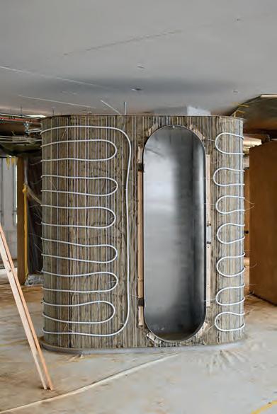 baños no solo ocupan la fachada, sino incluso las esquinas del edificio. Allí, colmados de plantas que aprovechan la humedad, se transforman en gruesas ventanas a través de las cuales la casa se abre al exterior. La puerta de vidrio que separa el baño refuerza esta idea: encuadra la ventana como si la casa fuera capaz de desplegarse telescópicamente para atraparla, apropiándose del paisaje exterior. Del higienismo al hedonismo: como lugares de regeneración y experiencia, el baño y la bañera hacen visible un culto al agua que hoy se vincula tanto a la cultura del bienestar como al wellness, entendido como una nueva sensibilidad global hacia el cuidado del cuerpo y la salud, que poco a poco empieza a influir en la manera de concebir la casa.