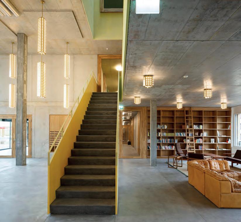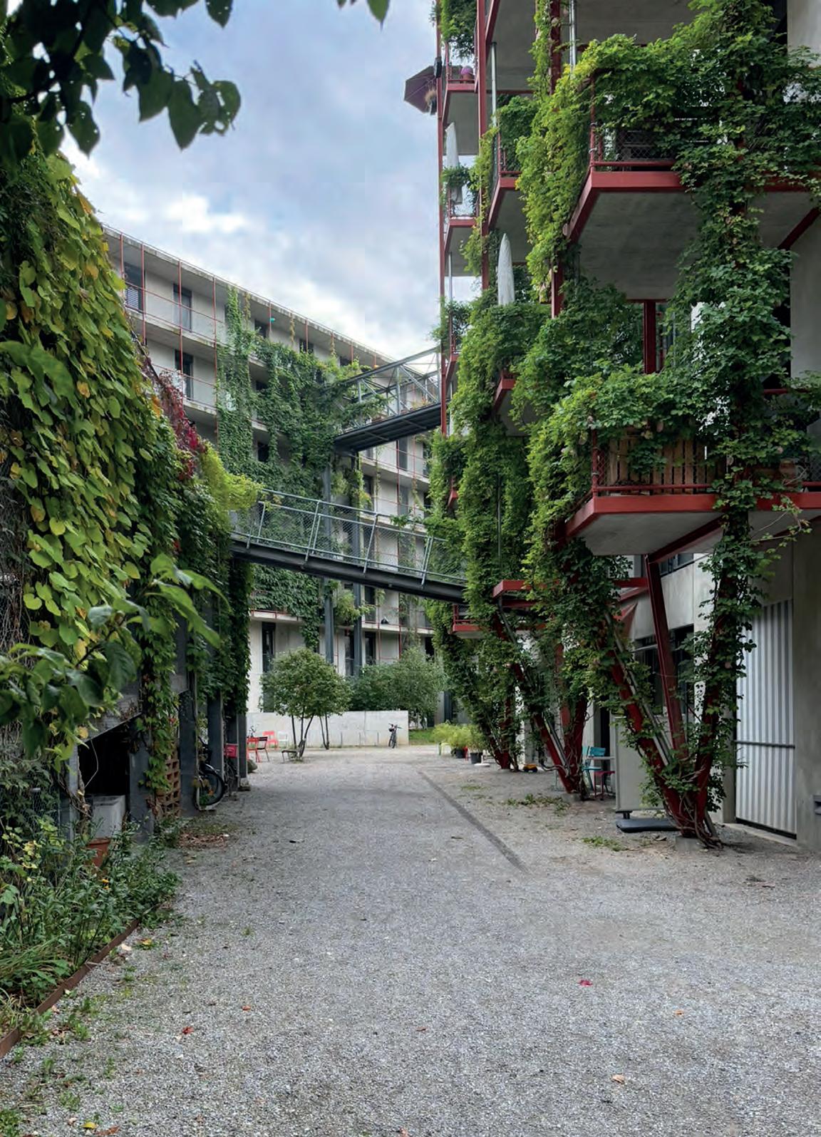 MP De hecho, uno de los retos en los edificios que construimos con sistemas pasivos es transmitir el funcionamiento del edificio a los usuarios y convencerles de que la solución no es el aire acondicionado. Esto es muy difícil, ya no tanto por el confort, sino porque supone un símbolo de estatus, y se convierte en algo aspiracional. Creo que deberíamos encontrar otros modos más fértiles de abordar la dicotomía entre lo homotérmico y lo heterotérmico, y en este sentido me gustaría citar algunos buenos ejemplos de vivienda contemporánea. En Regensdorf, en las afueras de Zúrich, la Casa bien atemperada de EMI-Architekten plantea la transformación provisional de un edificio de oficinas de la década de 1980 en viviendas unipersonales que ensayan la tipología clúster con estudios y espacios compartidos. La operación se inserta en un contexto urbano marcado por un fuerte desequilibrio: la presión sobre la vivienda asequible no deja de crecer, al tiempo que se multiplican las oficinas vacías y obsoletas, un parque envejecido que pierde atractivo ante el teletrabajo, la demanda de flexibilidad y los nuevos estándares energéticos.