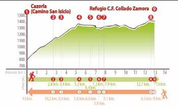Iniciaremos nuestros pasos en la localidad de Cazorla caminando desde las ruinas de la iglesia de Santa María, templo que quedó inacabado y fue parcialmente destruido por una inundación en 1694, que acabó con las posibilidades de finalizarla. El tiempo y la acción del hombre hicieron el resto, hasta encontrárnosla con el aspecto actual. Ascenderemos por un empinado carril donde encontraremos numerosas construcciones utilizadas por los cazorleños como lugar de esparcimiento y recreo. Continuaremos la ascensión hasta llegar a las ruinas de la ermita de San Sebastián, conocida localmente como Santo Bastián, una de las más antiguas de la provincia. Hoy en día se utiliza como un aprisco, perdiendo gran parte del encanto que antaño tuvo. Continuamos nuestro camino ininterrumpidamente, ascendiendo hasta llegar a un área recreativa, donde encontramos una fuente. Se trata del Área Recreativa de Riogazas. Un poco más adelante encontraremos un precioso mirador, que nos ofertará unas maravillosas vistas del pueblo inicio y final de nuestra ruta, Cazorla, destacando los castillos de Las Cinco Esquinas y de La Yedra.