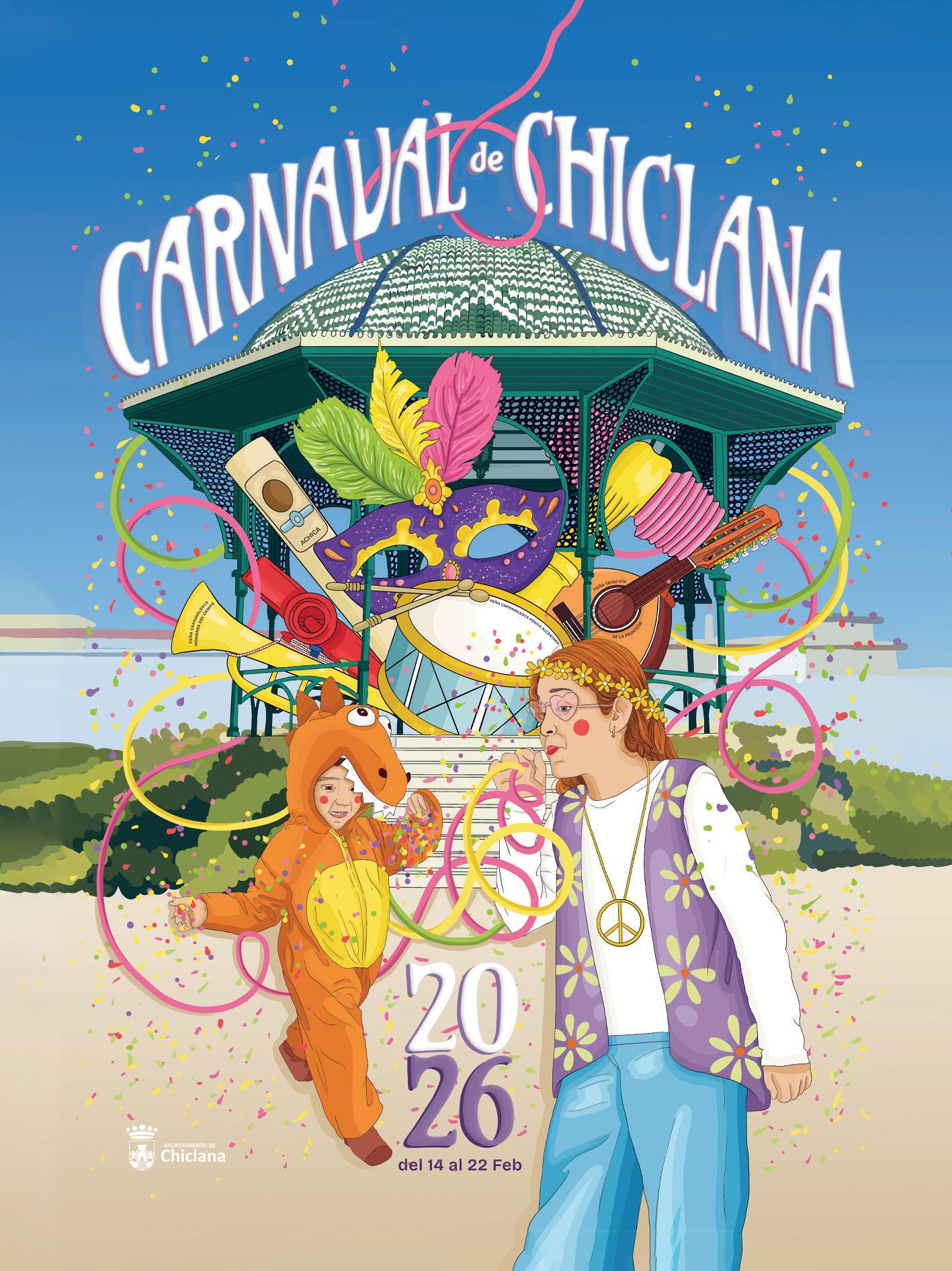 Llenemos de color nuestras calles en este febrero, hagamos que Chiclana brille más que nunca y vivamos el Carnaval como la ciudad se merece. Solo me queda desearos buena mano y buen Carnaval.