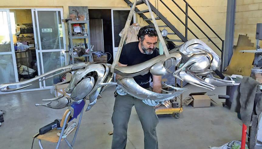 Esta escultura ha sido realizada en acero inox patinado sobre una técnica desarrollada en mi taller, que me permite llegar donde ninguna otra técnica tradicional se puede acercar, ya sea bronce, madera, etc., con un resultado impecable poco visto dentro de la escultura figurativa.