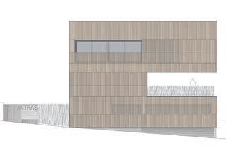 *Imágenes del artículo. 01:Sección por el vuelo. 02:Vista desde la calle Martín Santos Romero. 03:Alzado principal. 04:Estructura del vuelo. 05:Muestra de la fachada de lamas. 06:Muestra de rastrelado y capas de fachada. Autor imágenes:amas4arquitectura.