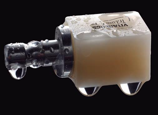 de VITA y la transición cromática natural se traducen ya de entrada en el color correcto y en un efecto similar al del diente natural.10 Los soportes de bloque permiten mecanizar hasta seis bloques simultáneamente en el imes-icore CORiTEC 350i PRO, lo que garantiza el aprovechamiento del equipo de fresado. En un tiempo mínimo, mediante el flujo de trabajo digital se habían creado restauraciones de dientes individuales absolutamente precisas, rentables y altamente estéticas, que aportan un interesante valor añadido para cualquier laboratorio.