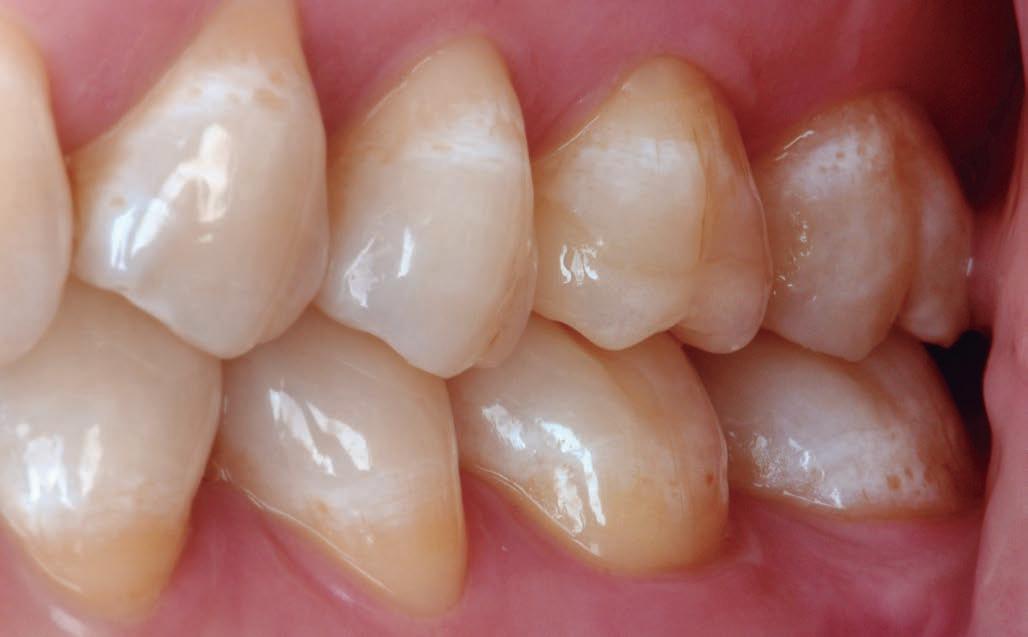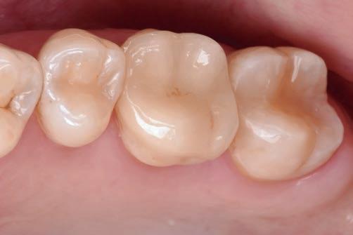 Fig. 24: Las restauraciones en los dientes 16 y 17 se integraron perfectamente en la sustancia dental dura.