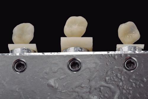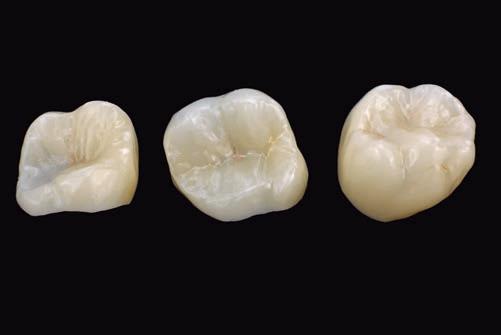 Fig. 15: Incluso fuera de la boca, las tres restauraciones presentaban un aspecto natural.