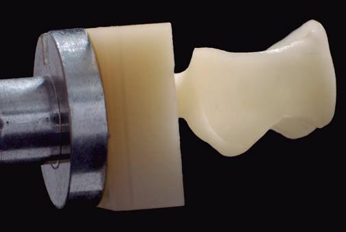 CORiTEC 350i PRO y se ejecutó la tarea de fresado. La fresadora necesitó, en promedio, tan solo unos 18 minutos para cada restauración. A su vez, el desgaste de las herramientas se situó en aproximadamente 3,50 euros por cada restauración. Naturalmente, los diámetros mayores fueron sometidos a mayor esfuerzo debido al uso más prolongado, mientras que la carga sobre los diámetros menores disminuyó progresivamente, lo cual se traduce en diferencias en la vida útil. La estrategia de fresado validada demostró ser acertada desde el primer momento, y proporcionó unas restauraciones con una precisión absoluta y sumamente estéticas ya en estado monolítico.