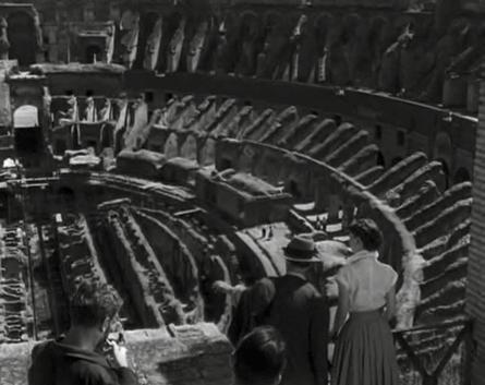Respecto a esto, podríamos tomar como ejemplo el film Vacaciones en Roma de William Wyler (1953), donde Roma es presentada a través de un recorrido que los personajes van realizando por los diferentes monumentos turísticos (1). Es de esta manera como la ciudad se representa cinematográficamente utilizando sus postales más