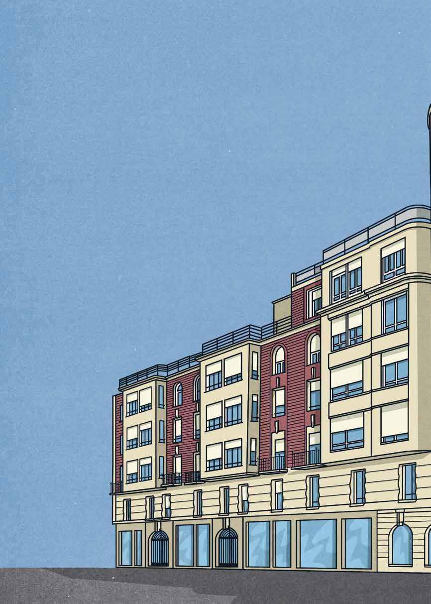 Alzado de bloque de viviendas, fachada Vara de Rey.