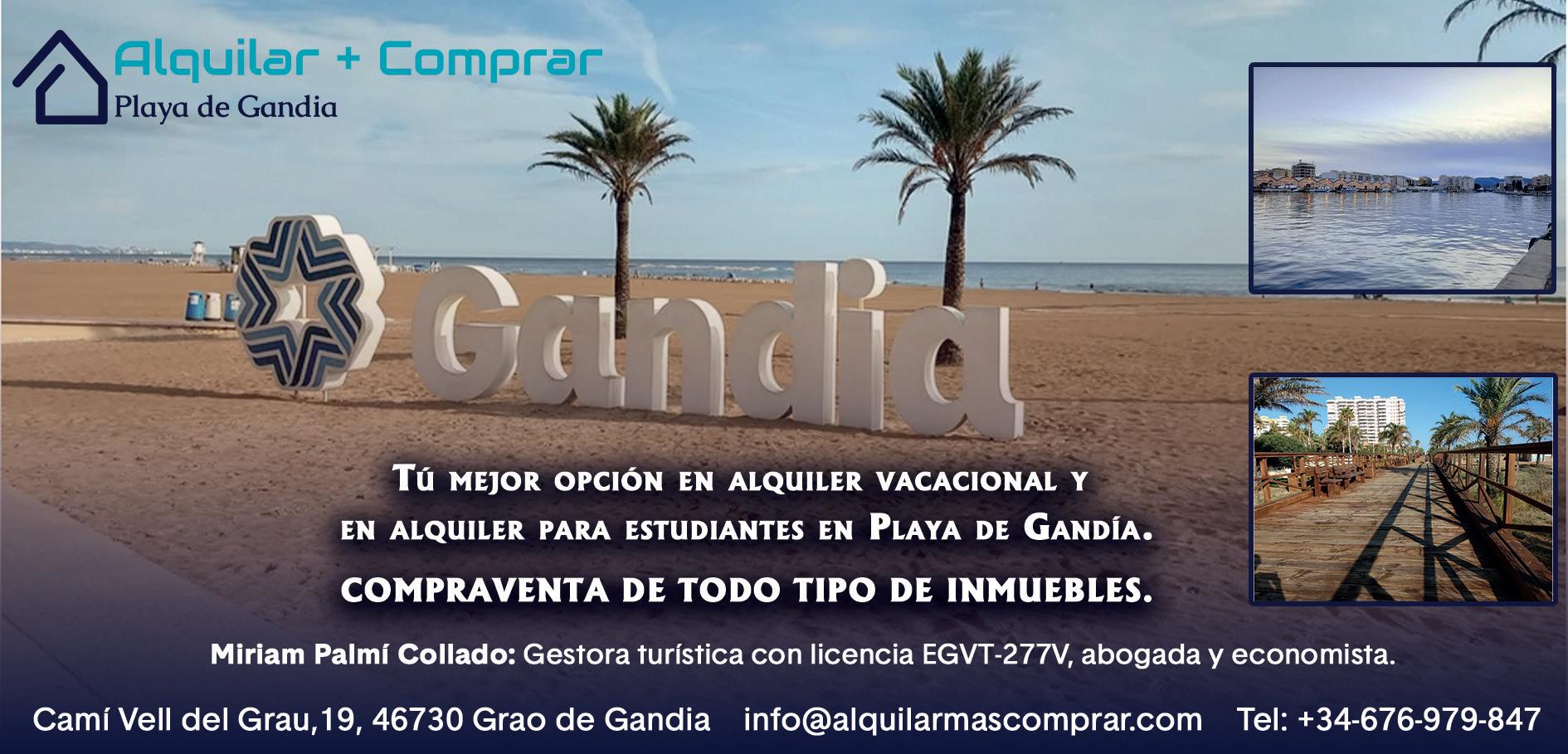 Somos un destino turístico con un gran abanico de posibilidades ya que aunamos, el Turismo de Sol y Playa, gracias a la gran playa de arena dorada, el Turismo Cultural, gracias a la influencia que la familia Borja ejerció en la historia de nuestra ciudad, Turismo Gastronómico, gracias a la Fideuà de Gandia y la dieta mediterránea, Turismo de Naturaleza, gracias a nuestro entorno, tanto zonas montañosas como al mar Mediterráneo, donde poder realizar múltiples actividades de senderismo, trail o actividades náuticas.
