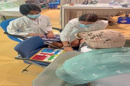 Durante la jornada, los estudiantes compartieron tiempo con los pacientes mientras recibían tratamiento, ofreciéndoles conversación, compañía e incluso partidas de parchís, en una actividad que buscaba poner en valor la importancia del acompañamiento humano en los procesos de salud.