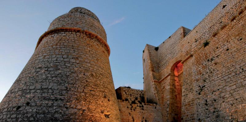 El recinte emmurallat de Dalt Vila, del segle XVI, que protegeix la vila medieval d’Eivissa. Endinsar-se en els seus carrerons, dins la ciutat murallada, amb cases dels segles XIV i XV, és una experiència que mai oblidaràs.