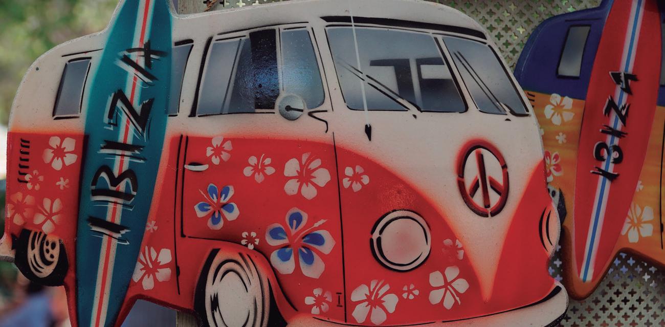 En el Puerto de Ibiza y en el paseo de Figueretes cada noche de junio a octubre encontraréis mercados hippies donde podréis hallar manufacturas de la piel, cerámica, plata, joyas y bisutería...