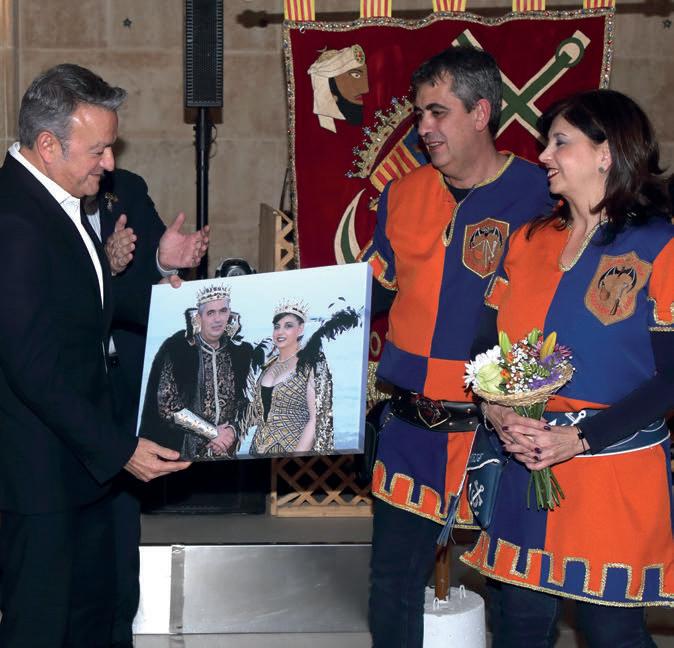 Seguidamente, se recibió a los que durante el año pasado ocuparon un puesto prioritario al frente de la representación de la fiesta. Con mucha emoción se despidió a las Abanderadas 2018, Paula Andrés Lacueva y María Buigues Llidó y a los Capitanes Trabuquers, Fernando Piles Almela y Virginia Castellano Ruano. A todos ellos se les entregó un cuadro conmemorativo con una imagen suya encabezando la celebración de hace un año. Tanto las Abanderadas como el Capitán agradecieron a sus filàes y a la fiesta el trato recibido durante todo el ejercicio festivo.