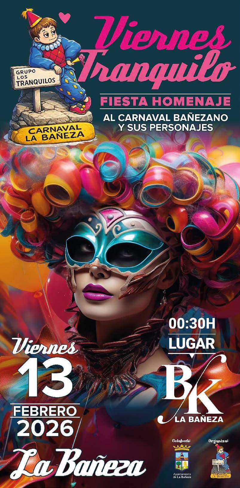 Fiesta homenaje al carnaval bañezano y a sus personajes y entrega de premios a los mejores grupos del carnaval 2025.