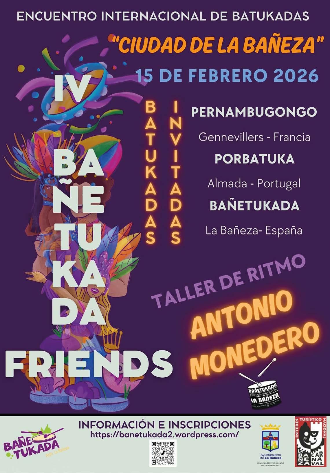 Pero centrándonos en los Carnavales Bañezanos , vuelven a visitarnos los amigos portugueses PORTBATUKA (a los que hay que ir buscándoles alojamiento definitivo porque acabarán empadronándose aquí) y PERNANBUCONGO que se fueron el año pasado con muchas ganas de volver.
