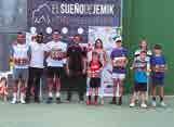 El tenis tiene una gran ocupación en nuestra localidad, organizando el campeonato provincial junior (foto 6), partidos donde se ha jugado el circuito de jóvenes promesas (foto 1 y 2), además de organizar el V OPEN SUEÑO DE JEMIK a beneficio de AFANION (foto 7) con más de 50 partidos dsputados.