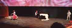 Y al darles el sol la espalda revolotean las faldas bajo un manto de guirnaldas para que el cielo no vea. En la noche del patrón brindaremos en su honor, en la posada de un sol que saldrá por donde quiera