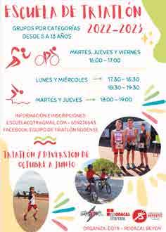 Hemos participado en más de 20 pruebas provinciales, regionales, nacionales e internacionales; donde se han cubierto todas las categorías: desde benjamín hasta absoluto. Destacando la gran labor de la Escuela de Triatlón con más de 60 deportistas y con 14 clasificados para el Campeonato Regional.