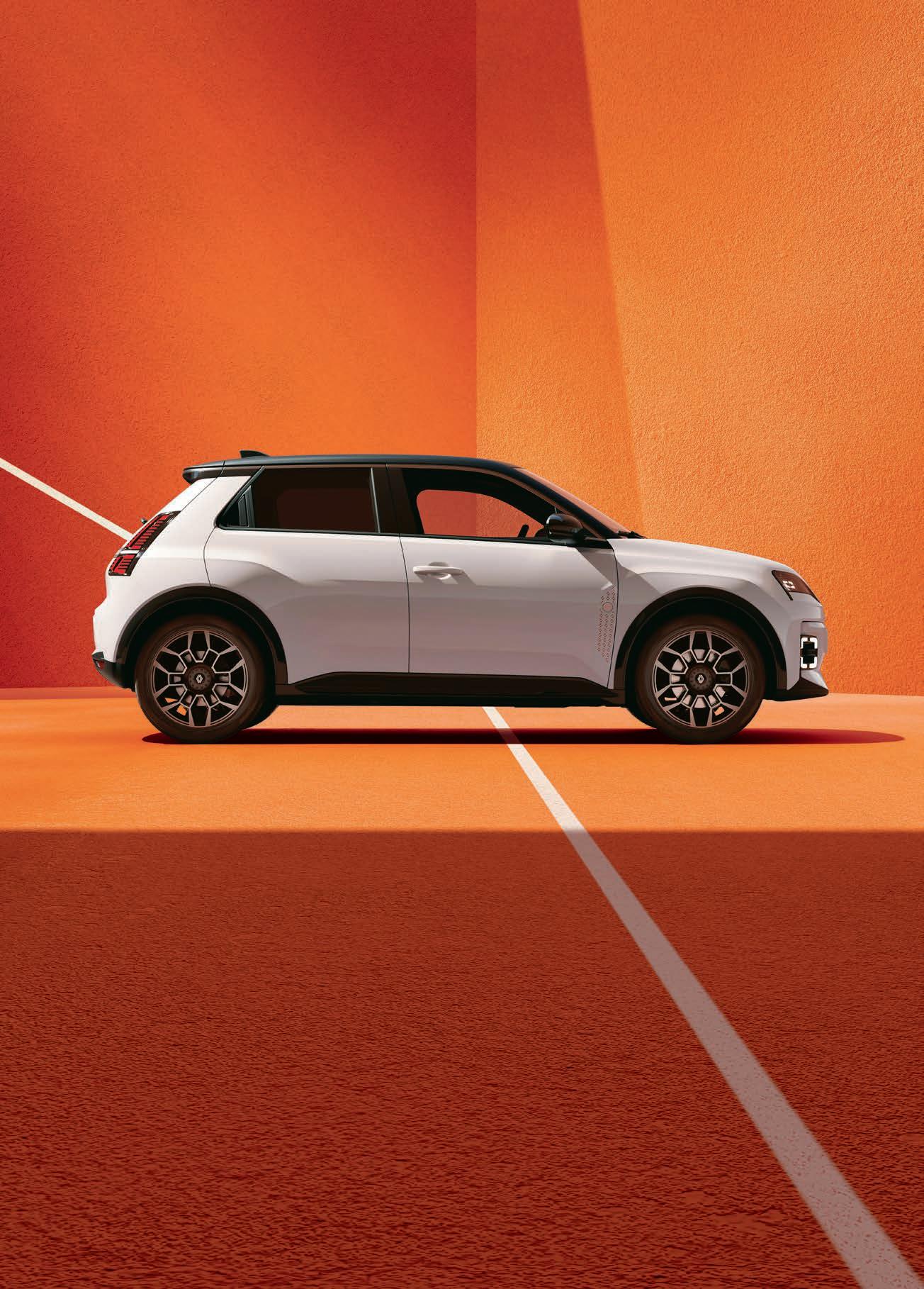 modelo mostrado: Renault 5 Roland-Garros con pintura metalizada opcional en color blanco perlado y decoración de techo en color negro satinado con efecto de tejido gráfico (opción disponible próximamente). *según datos wltp. consumo mixto wltp (kWh/100km)**: 14,6 - 14,8 para la versión de gama confort de 52 kWh. emisiones wltp CO 2 (g/km)**: 0.
