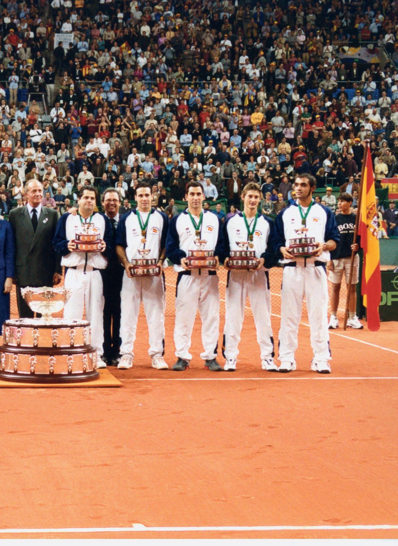 Juan Carlos Ferrero, Álex Corretja, Albert Costa y Joan Balcells, pusieron rostro a un éxito que no solo les pertenecía a ellos, sino a todas las generaciones anteriores del tenis español que habían hecho posible aquel instante.