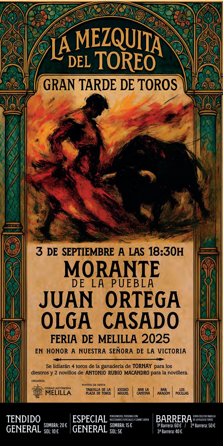 • Barrera (solo taquilla de la Pz de Toros), 1ª 60€, 2ª 50€ y 3ª 40€.