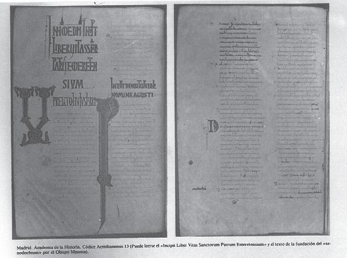 tección para indigentes enfermos o no, en tiempos del obispo Marcial, fundada por el diácono Lelio. Las orientaciones de los concilios apoyan la creación de estas casas y de los hospitales. Paulo, médico griego, llega a la ciudad en esa curiosa diáspora por los territorios del mar interior de los romanos. Su profesión le encumbra y el loby griego le apoya para conseguir el obispado de la capital de la provincia de la Lusitania. La especial maestría en el control de los tiempos de su actuación como obispo y médico ante la urgencia de asistir a vida o muerte de una matrona, esposa de un senador romano, le hace acreedor de una inmensa fortuna, sobre todo a la muerte de los dos esposos. La mujer estaba aquejada de un embarazo con feto muerto, operación ginecológica que la tienen que realizar los sacerdotes-médicos de la iglesia. Pero no saben o no quieren, pues el derramamiento de sangre no era bien visto por las autoridades eclesiales, especialmente prohibidas a sus clérigos. Las explicaciones sobre cómo hacer una embriotomía (que no cesárea) con feto muerto, es la primera lección conocida de esa escuela , y que el obispo Paulo dicta en el periodo de su obispado. Algunos hemos creído ver en esta lección un atisbo de que la escuela sería el antecedente más remoto de la futura Facultad de Medicina en la región. La existencia del xenodochium de tiempos del obispo Masona (571-605) es evidente; ahora podemos pasear por sus restos arqueológicos puestos en pie en la barriada de Santa Catalina por mi querido amigo Pedro Mateos. El hospital para peregrinos está a sólo doscientos metros de la basílica de Santa Eulalia, orientado en dirección Este-Oeste: edificio de planta rectangular, con nave de una sola planta y de doble altura, con dos alas y nave central absidiada, posiblemente dedicada a la vida religiosa; cumpliendo con las normas de todo hospital medieval: monasterio, necrópolis, agua y extrarradio de la ciudad. No es el momento para explicar todo el modelo hospitalario que se desarrolla con su puesta en escena, lo hemos analizado con extensión en otro espacio, pero no quiero dejar en el tintero que es el hospital más antiguo de España, del que se tengan noticias objetivas de su funcionamiento, y claramente ubicado en el urbanismo emeritense. La existencia de médicos, servidores, urgencias, traslado de pacientes, sin discriminación asistencial, dirección profesional, gerencia económica y fuentes financieras para su proyecto y servicio, son únicas en este mundo de los hospitales tardoromanos. Por ello, consideramos que el legado de Masona, con la base económica del obispo Paulo y mantenida por su sobrino y obispo Fidel a la iglesia emeritense, hizo posible su construcción y funcionamiento, siendo, a mi entender, las noticias más interesantes para la historia de la medicina española y extremeña. La primera descripción de un delirum tremens por las Vitas, lo considero como la reseña más antigua en nuestro país y de la región, sobre tal patología alcohólica. El monje beodo del monasterio de Cubillana, aquejado de una dependencia crónica de los mejores caldos de las alacenas del cenobio y padeciendo una gula diabólica, entra en el terrible escenario de una historia que le llevará a la muerte por suspender la ingesta de sus bebidas más atractivas, debido a la reprimenda, reproche o increpación moral de unos alumnos de la escuela del convento. Gula y alcoholismo que antiguamente se conocía como gastrimargia. La suspensión forzada de dejar de consumir el buen vino de los monjes le lleva a la muerte en sólo tres días, tiempo especialmente dramático y narrado con cariño por parte del autor/es del opúsculo emeritense. La especial publicación del episodio en las jornadas de viticultura de Tierra de Barros, pudo ser una llamada educativa a un consumo mínimo de bebidas alcohólicas.