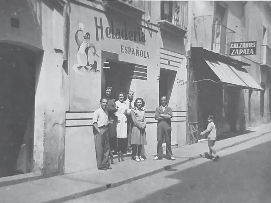 Instantánea del mostrador original con empleados de la heladería. Foto cedida por los hermanos Teresa y Santi Amorós.