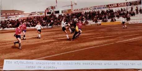 (Sintetizando): contó en este último capítulo, con un plantel de futbolistas con “mimbre local” en un 90%. Los hermanos Pla, Mateo, Calderón, Maxi, Cordero… y un alto porcentaje procedente del equipo juvenil que entrenaba Félix Cuellar, casos de Juanfran, Galán, Luis, Curado, Paquito, Grajera o un Ángel Martínez, que había debutado ya con el primer equipo en la 83/84. Contra el Puebla Patria a los 15 años, todavía en edad infantil, que supone “un record”, en este caso de precocidad.- Siendo a la salida de Boni, cuando retornaba un Fouto, que volvía a contar con Juan Ceballo, que sería cesado en la recta final de aquella rocambolesca temporada 1987/88 que fue la del “estancamiento” con el CD Don Benito, y con un Gregorio García Jiménez “GORI” que se perfilaba como el nuevo inquilino del banquillo emeritense.