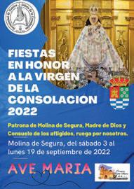 Queridos vecinos, queridas Mevecinas:complace saludaros y felici taros en mi nombre, y en el de toda la Corporación Municipal del Ayuntamiento de Molina de Se gura, con motivo de las Fiestas en honor a la Patrona Ntra. Sra. de la Consolación, que se celebran del 3 al 19 de septiembre.