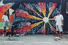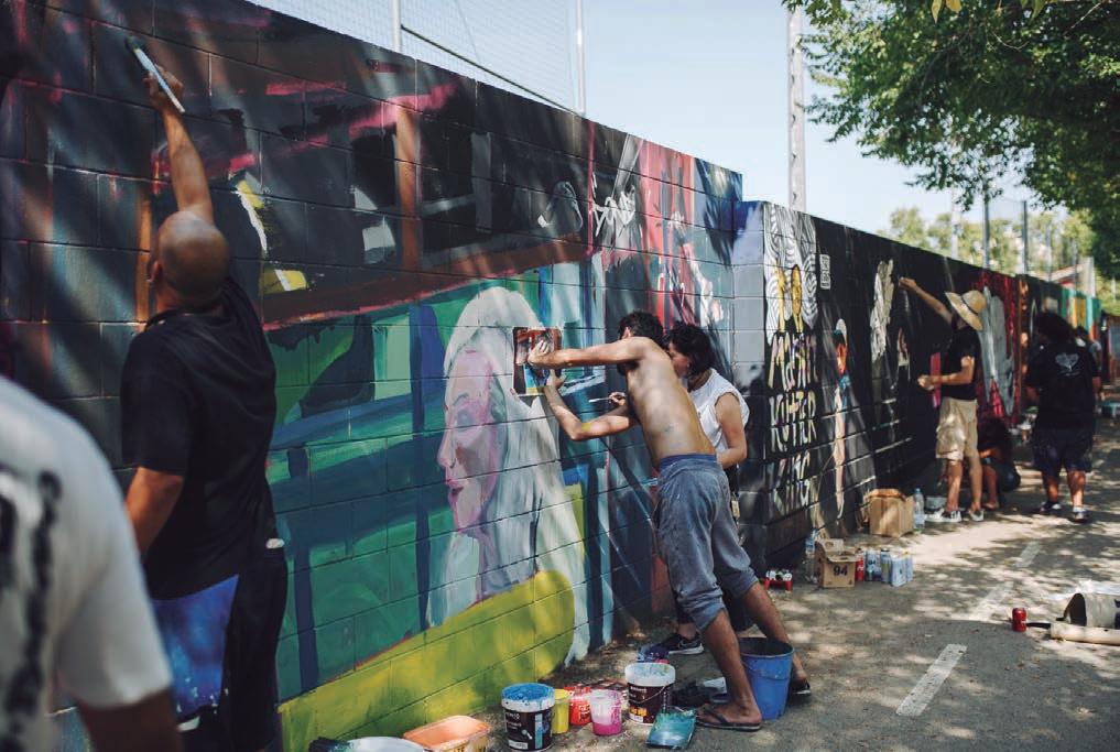 Mural participatiu amb els veïns i veïnes del barri de Santa Eugènia. Girona, 2019.