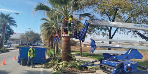 También han realizado mejoras en el sistema de riego en la rotonda de Avda. de Andalucía y se ha recuperado el césped con recebado de mantillo cribado proveniente de la planta de compostaje municipal Los trabajos de mantenimiento en parques, jardines y zonas verdes son constantes y desde la Delegación han procedido recientemente a la poda de palmeras y de árboles