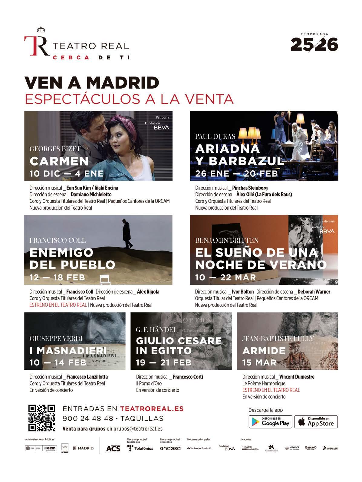 Horarios y entradas: teatroespanol.es El Teatro Español de Madrid acogerá Luces de bohemia, la obra maestra de Ramón del Valle-Inclán que dio origen al esperpento, ese espejo deformante donde la realidad se convierte en sátira. A través del último viaje nocturno de su protagonista, Max Estrella, por un Madrid grotesco y lúcido, la puesta en escena recupera la crítica social y el lenguaje brillante del autor gallego. Con una cuidada dirección y escenografía que evocan la decadencia modernista, la producción revisita los límites entre arte y miseria, y humor y tragedia. Una cita imprescindible del teatro español contemporáneo.