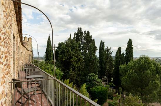On the way back, the swimming pool – surrounded by olive and orange trees – prolongs the tranquillity of the courtyard and the towers: a rest that today adds a contemporary touch to its memory.