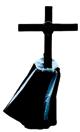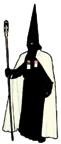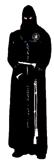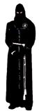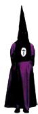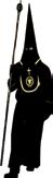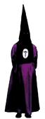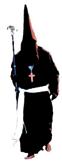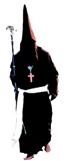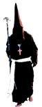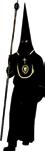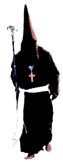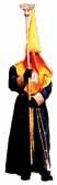 Túnica negra, sencilla, con cordones plateados en el reborde inferior del capillo y en la parte superior de las bocamangas