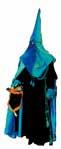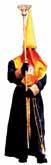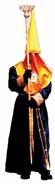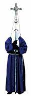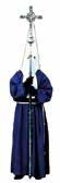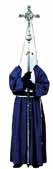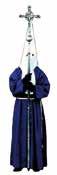Túnica de color azul marino sencilla, sin tablas. Manga ancha, capuchón de un metro de largo de color azul marino con el emblema de la cofradia