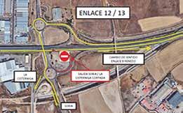 El tráfico se canaliza a través del enlace, en el km 12 de la VA-30 para salir hacia Soria / La Cistérniga / Valladolid centro, según se indica en el croquis.