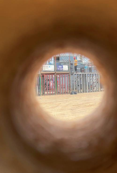 Una vez el toro está fijo en el pilón, comienza el trabajo de insertarle los herrajes con las bolas o el embolado. Ello no siempre es así, a veces los toros ya vienen con el montaje a punto y solo es necesario prender las bolas.