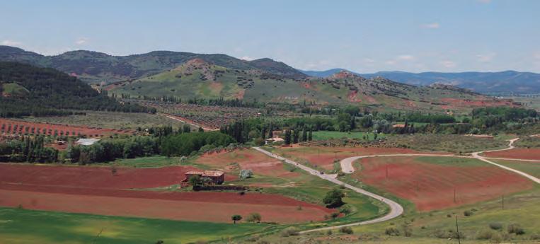 Los paisajes que disfrutaremos en el recorrido por la comarca nos adelantan los productos que ésta nos ofrecerá. Si en las zonas más llanas vemos un claro dominio del cereal y el monte bajo, con huertas y viñedos intercalados en las vegas de los ríos, en las partes altas podremos observar densos olivares junto a impresionantes masas arbóreas de pino y encina.