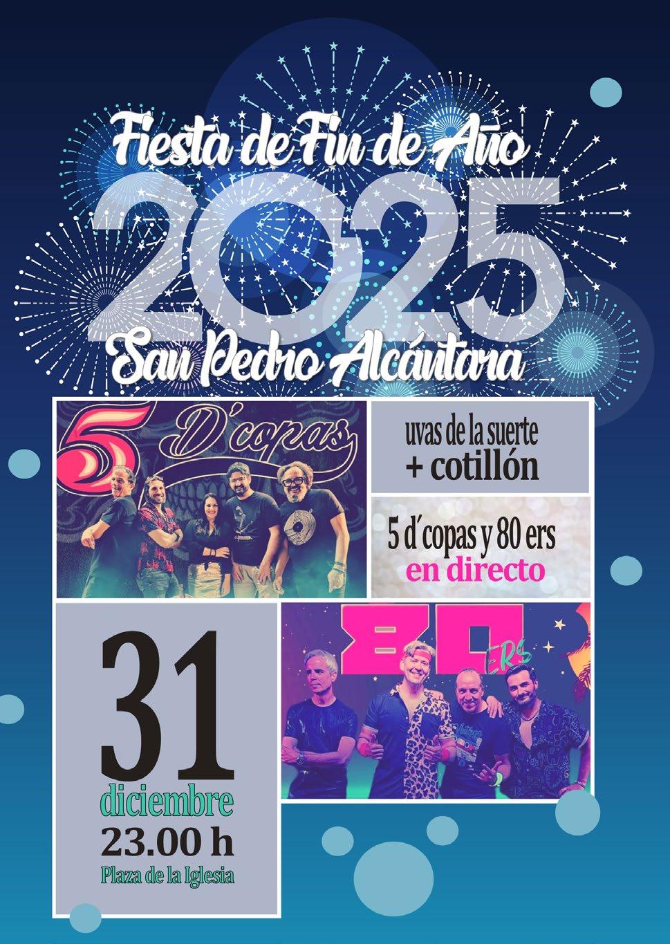 23.00 H. Fiesta de Fin de Año organizada por la Delegación de Fiestas en la plaza de la Iglesia. Un espacio inmejorable para despedir al 2025 en un ambiente agradable y acogedor, gracias a la instalación de una serie de estufas que suavizarán las temperaturas. Contará con las siguientes actuaciones: 5