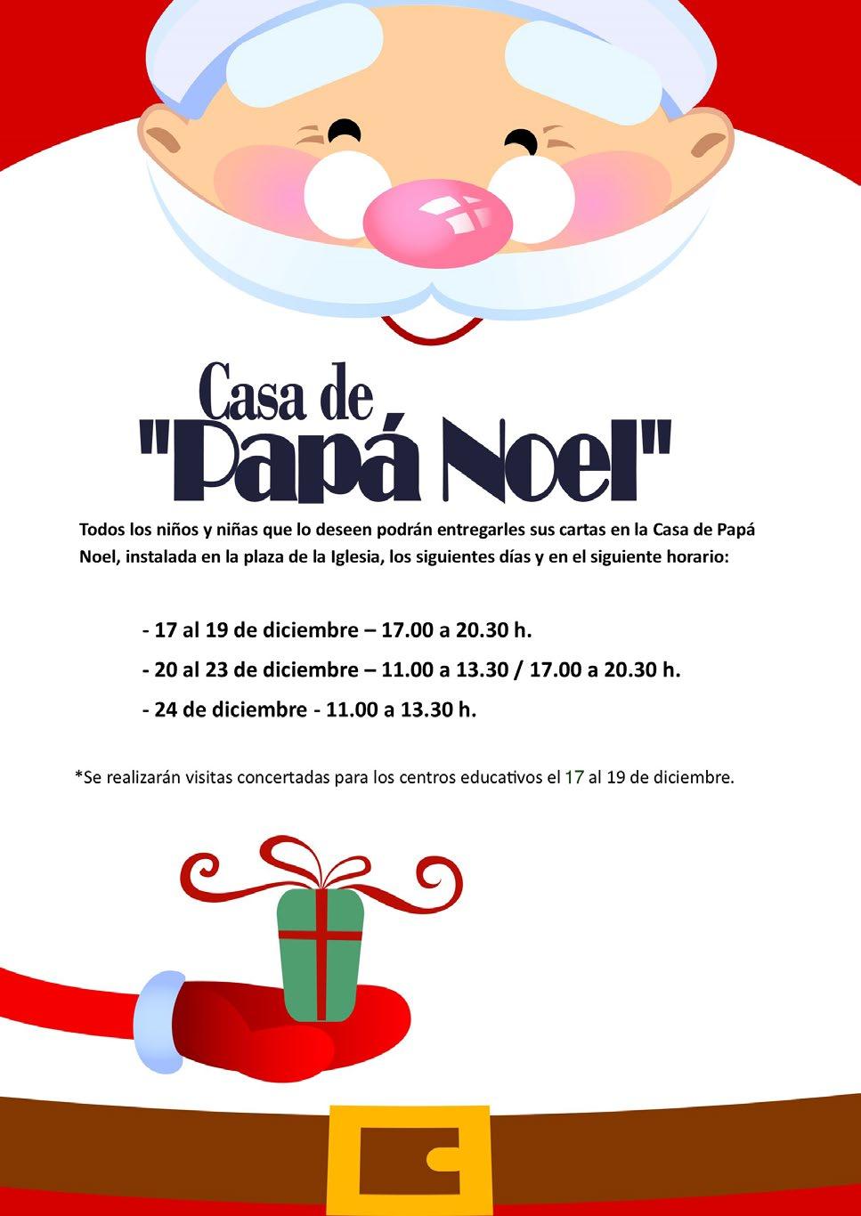 Todos los niños y niñas que lo deseen podrán entregarles sus cartas en la Casa de Papa Noel, instalada en la plaza de la Iglesia, los siguientes días y en el siguiente horario: 17 al 19 de diciembre 17.00 a 20.30 h.