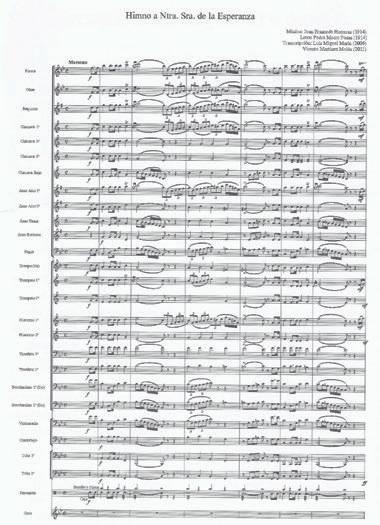 Partitura del Himno a Nª Sª de la Esperanza, versión para banda de Luis Miguel Marín, 2006.
