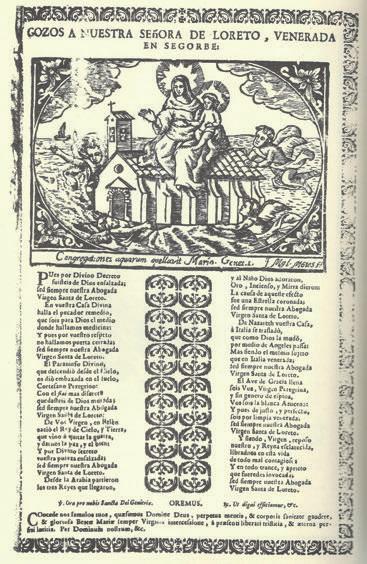 Imagen en el papel de Gozos a la Virgen de Loreto, siglo XVIII (ACS).