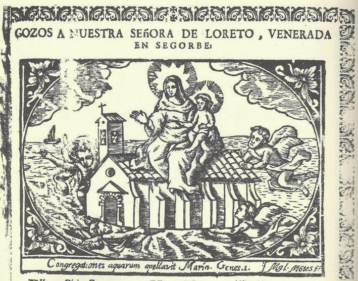 Muestra de la importancia que se le dio a la fiesta, entre las liturgias catedralicias, es que la misma ya la encontramos recogida en los libros cantorales del Coro, en concreto en uno escrito y miniado por el afamado copista e iluminador mosén Eliseo Boronat en la primera mitad del siglo XVIII, en el que aparece «Todo el Oficio con himno y Misa de la Traslación de la Santa Casa del Loreto; antes de él una estampa de toda una plana, con la Virgen sentada sobre el tejado, y en la que sigue da principio a dicho oficio por el himno, sus márgenes de primoroso adorno de aguada, y su primera letra de la misma y colores». Es posible que el dibujo aludido como estampa pueda ser el que aparece en la impresión de los Gozos a Nuestra Señora de Loreto, venerada en Segorbe, edición de finales del siglo XVIII. Como puede verse, en la imagen la Virgen sedente, llevando al niño Jesús sentado en su regazo, aparece sobre el tejado de una iglesia. Fue impresa en Valencia, obra del xilógrafo Miguel Montes, y a los pies contiene la leyenda «Congregationes aquarum apellavit Maria» inspirada en el capítulo 1 del Génesis. La frase se debe a santo Tomás de Aquino, y viene a significar, como nos apunta el catecismo de Antonio Marçal, editado en 1727, «porque el Señor a las referidas aguas congregadas y unidas no las llamó María», puesto que el nombre significa mar y «más se dilata María en favores y gracias, que el mar en aguas y espumas», siendo muy utilizada como tema en sermones del siglo XVIII en festividades del Dulcísimo nombre de María o sobre las excelencias de San José, sobre todo por padres jesuitas.
