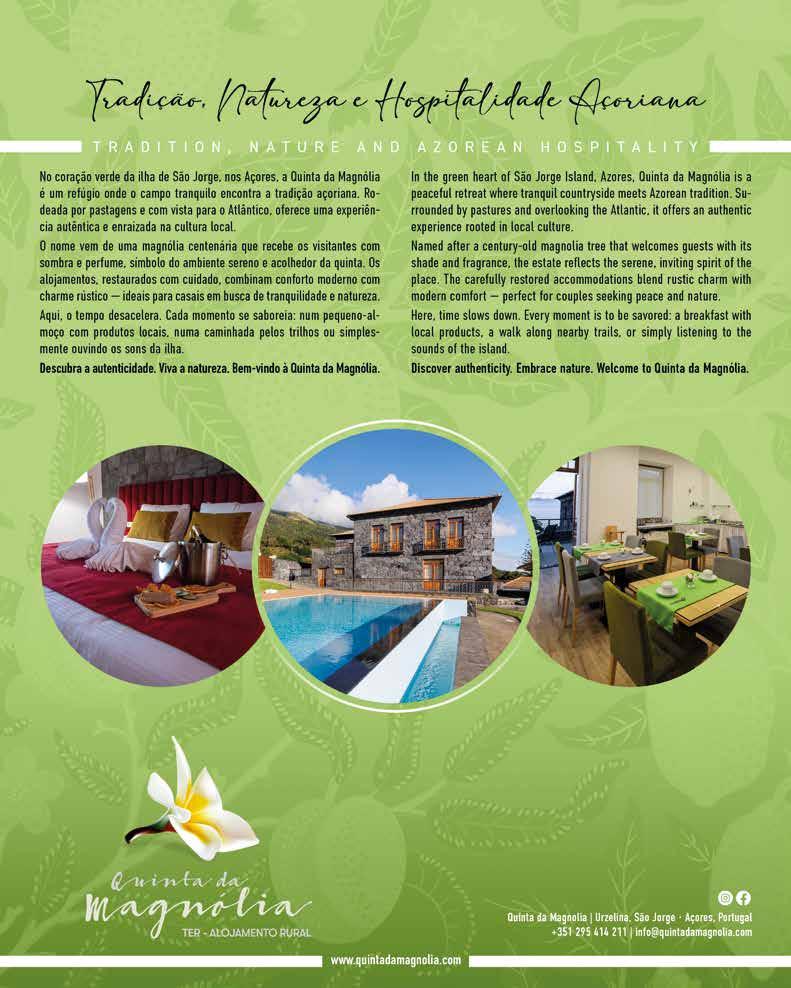 Azorean Spirit is a bilingual magazine published by SATA Group and distributed on all flights, free of charge. Publisher bears no responsibility for the return of unsolicited material and reserves the right to accept or reject any editorial and advertising matter. No part of the magazine may be reproduced without written permission.
