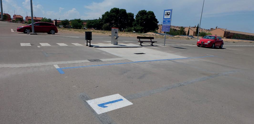 La señalización horizontal con marcas viales con pintura acrí lica reflexiva delimita las nuevas plazas de aparcamiento, donde es posible estacionar y pernoctar en autocaravana, con un máxi mo fijado en 72 horas.