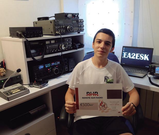 Durante el campamento, los participantes montaban una estación con emisora y antena en los lugares que visitaban para que se pudieran conectar radioaficionados de Europa, suman do puntos al lograrlo. El que más puntos acu mulaba, se llevaba el premio. Adrián recogió el suyo los días 17 y 18 de septiembre en IberRa dio, la VII Feria de las Radiocomunicaciones que se celebró en Ávila. “Participé en la categoría joven, para menores de 26 años. Me dieron un diploma y 500 euros para gastar en una tienda de radioaficionados que ya he invertido. Me he comprado una emisora nueva, porque la que es taba utilizando es muy antigua, tiene casi cuatro décadas”, dice.
