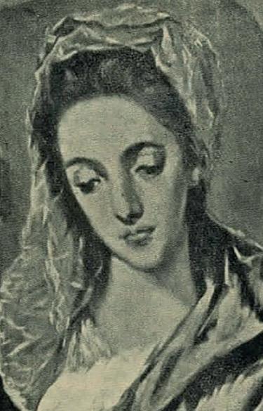 Copia de la virgen del Greco. Obra de Juan Garín. Imagen reproducida en la revista Deitania, en su edición número tres, referida al año 1955 y publicada por el Instituto Juan de la Cierva y Codorníu.